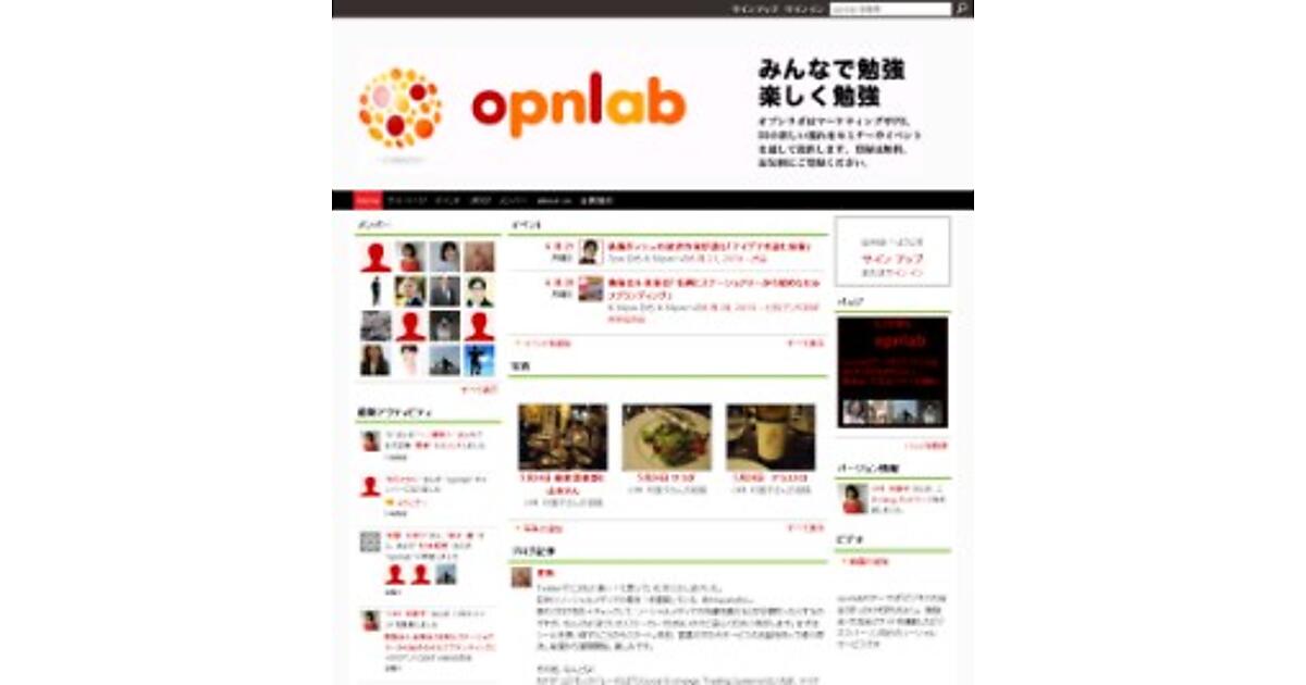 opnlabは、「ビジネスパーソンとビジネス・仕事が出会うきっかけを気持ちよく」をテーマに、肩肘をはらないオープンな情報交換と交流ができる場を創ることを目的としたソーシャルサービス。opnlabそのものが、ソーシャルWebサイトになっており、登録するとopnlab上で告知される勉強会に参加できる。