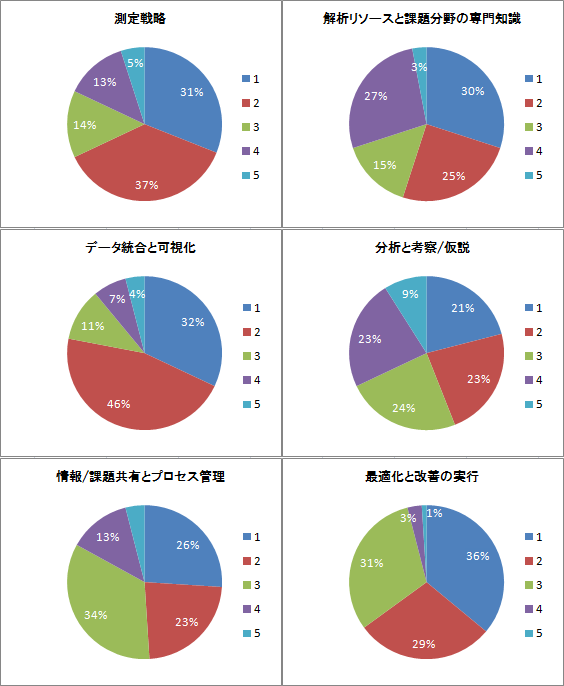 まずは、マーケティングに携わる個々人が、同社がオンラインで行っている調査(アンケート形式のサーベイ)に回答することから始まる。この調査(5分~15分程度、無料)に協力すると、ウェブトレンズのスタッフが回答を分析して、後日メールで「現在、回答者がデジタルマーケティングの成熟段階でどのレベルにあるのか」のスコアリング結果を届けてくれる(この段階で、世の中の他社がどのレベルにあるのかの平均や分布も明らかになる)。