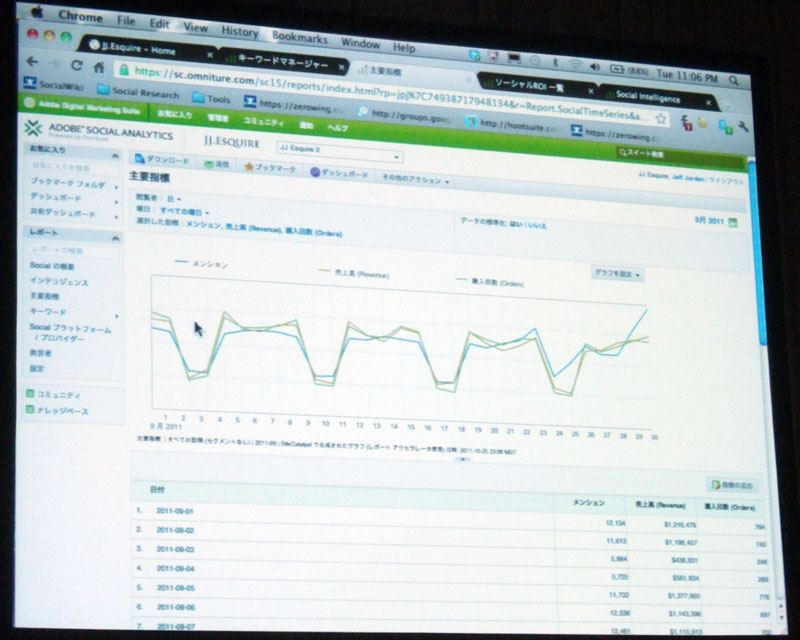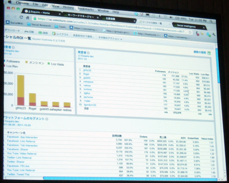 また、アクセス解析ツールの「SiteCatalyst」と連携し、サイト上の解析データを組み合わせることで、ソーシャル上のやり取りが実際の売上に結びついたのか、営業的な評価も可能だという。単純にソーシャル上の声を集めるだけでなく、友人への紹介が最終的なCVRに影響しているのか、「いいね!」あたりの売り上げはいくらかなど、トラフィックやCVRなどとの関連性を測定する。