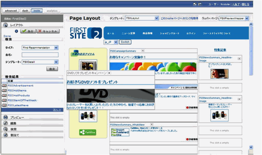 同製品は、「コンテンツ管理システム」という枠組みではなく、「コンテンツ管理」「業務生産性の向上」「社内コミュニケーションの迅速化」、さらに「マーケティング効果の最大化」といったことを目的に既存の同社製品群を再パッケージしてスイートとしたもので、20もの同社既存ソフトウェア製品のコンポーネントを整理したスイート製品となっている。