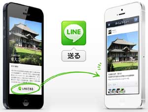 「LINEで送る」ボタンは、閲覧中のiPhone/Android端末対応のWebサイトやアプリの情報を「LINE」のトークやグループ、ホームにワンクリックで共有できる機能。TwitterやFacebookなど、他のソーシャルメディア共有ボタンと同様に設置したいとの要望を受け提供開始した。Webサイトやアプリ提供者は、LINE上の親しい友人間の情報共有による集客が期待できる。