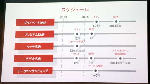 まず、世界的なビデオ広告プラットフォームであり、広告の予約配信技術に優れた米ビデオロジー社とライセンス契約を結び、同社プラットフォームを活用したビデオ広告を提供する。1つの広告素材でPC、タブレット、スマートフォンなどのマルチスクリーンに配信可能。また、Yahoo! JAPANとGyao!のビデオコンテンツ数と対応サービス数を拡充し、現在の10倍となる6,000万人が視聴する環境を2014年度末までに整える。