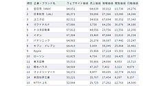 (6)トヨタ自動車=438億2100万円(7)ソニー=383億2800万円(8)au=371億8300万円(9)積水ハウス=359億5700万円(10)パナホーム=353億4100万円(11)アップル 352億8000万円(12)セキスイハイム=351億900万円(13)ソフトバンク=346億7000万円(14)サントリー=343億1500万円(15)ヤマト運輸=303億1400万円(16)ホンダ=297億1200万円(17)三菱地所レジデンス=281億400万円(18)ユニクロ=278億600万円(19)旭化成ホームズ=277億8200万円 (20)DHC=267億9100万円