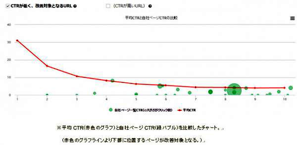 また、抽出した改善対象ページを形態素解析技術を用いて解析し、検索クエリと改善対象ページのマッチング度を評価。どのようなキーワードがページタイトルに足りないのかを提案する。改善ページの洗い出しから、評価、改善案までを手軽に得られるようになる。