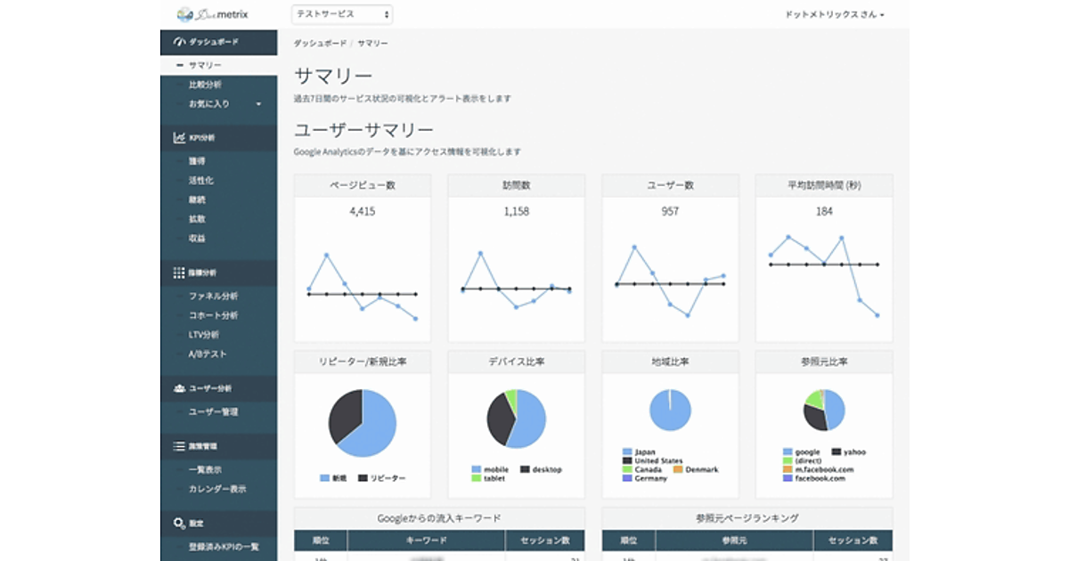 「Googleアナリティクスを利用しているが、メニューや指標が多すぎて難しい」「どの指標を見ればいいかよくわからない」といったニーズに応えたサービスだ。