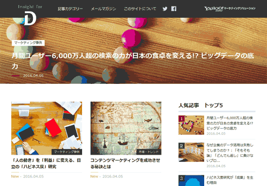 ヤフーは4月5日、デジタルマーケティング情報サイト「Insight for D(インサイト フォー ディー)」を公開した。