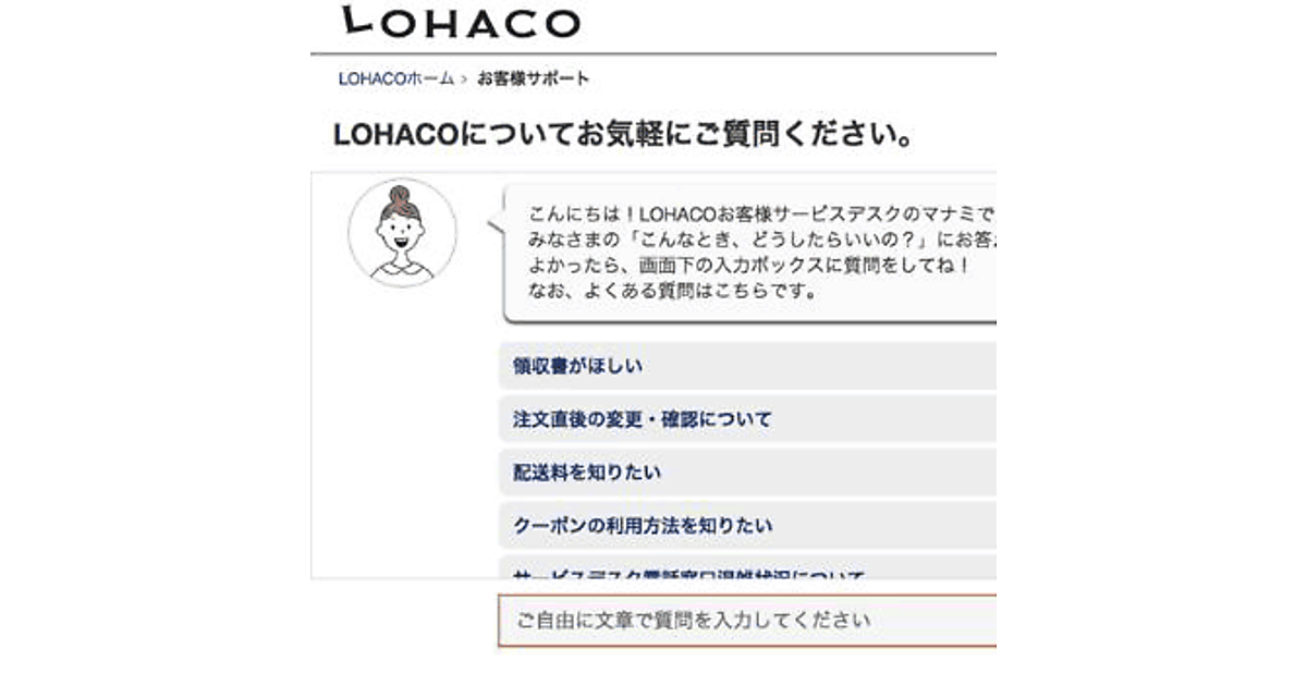 アスクルは、同社が運営する日用品のECサイト「LOHACO(ロハコ)」において、人工知能チャットボットの「マナミさん」が、2016年3月の全問い合わせ対応の3分の1をカバーしたと5月19日に発表した。