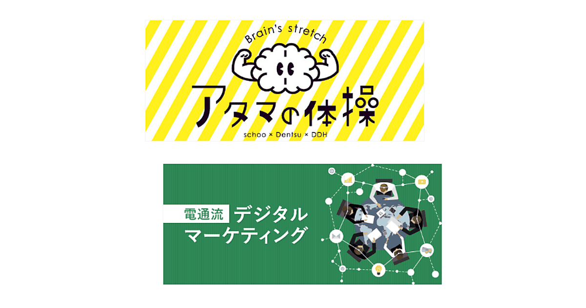授業はスクーが運営する「schoo WEB-campus」上で行われ、全6回の放送を5月から10月まで、毎月の最終金曜日に放送する予定。各回が「アタマの体操」と「電通流 デジタルマーケティング」の2番組を放送する特別構成となる。