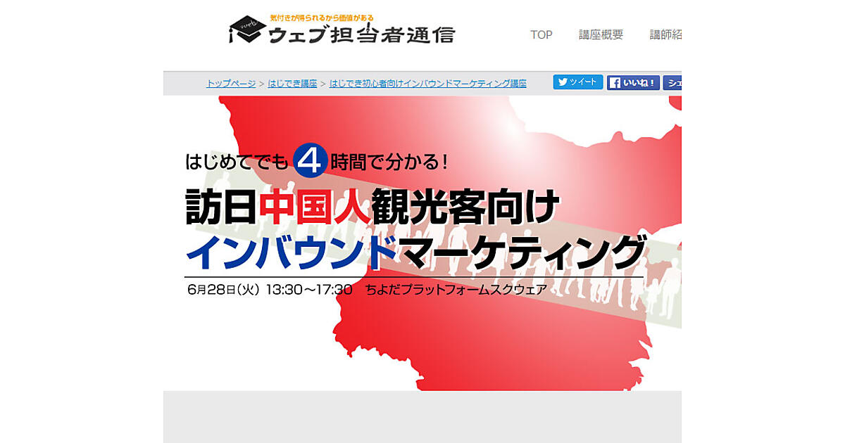 - はじめてでも4時間で分かる! 訪日中国人観光客向けインバウンドマーケティング