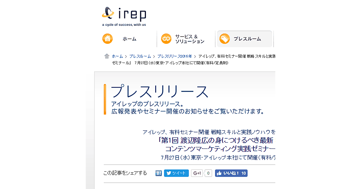 アイレップ、「第1回 渡辺隆広の身につけるべき最新SEOとコンテンツマーケティング実践ゼミナール」7/27開催