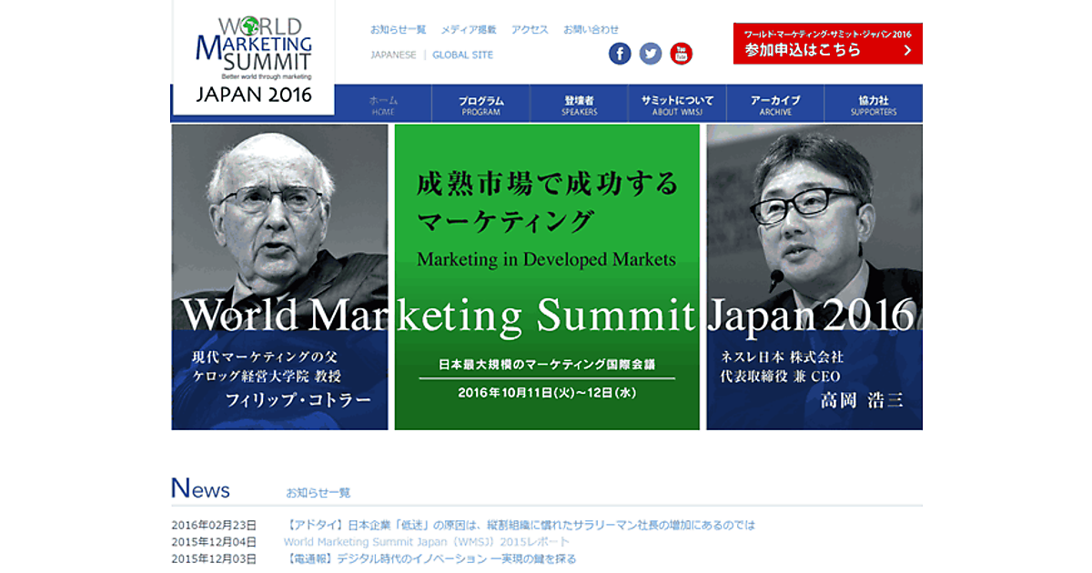- 主催: ワールド・マーケティング・サミット・ジャパン 2016 実行委員会