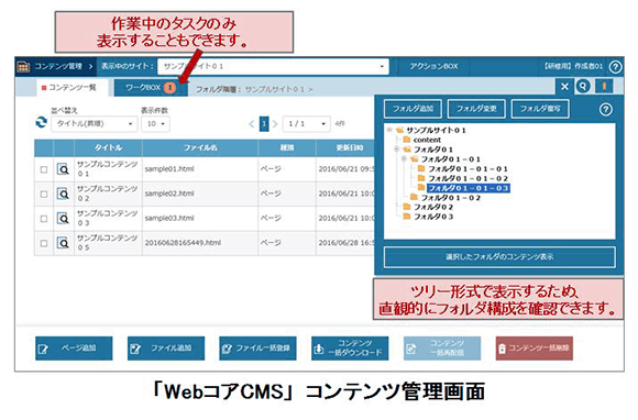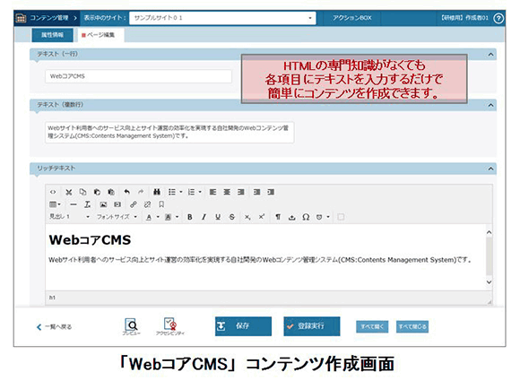「WebコアCMS」が備える機能は次のとおり
