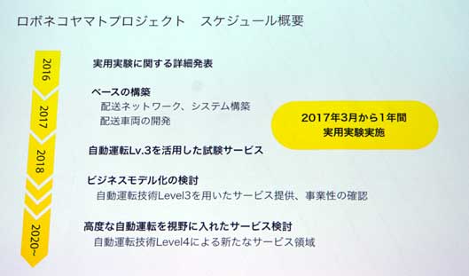 ディー・エヌ・エー(DeNA)とヤマト運輸は7月20日、自動運転技術を活用した次世代物流の実用実験に向けた共同プロジェクト「ロボネコヤマト」の始動を発表した。2017年3月から1年間の実験を予定している。