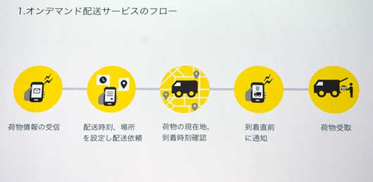 主な利用者として、共働きの主婦や1人暮らしの人を想定したサービス。利用者が希望する場所と時間で荷物を受け取ることができるほか、スマートフォンを使った荷物の現在地・到着時刻の確認ができる。
