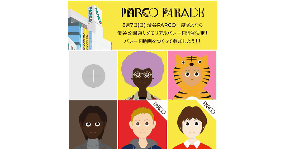 パルコは、8月7日(日)に「渋谷公園通りメモリアルパレード~みんなで歩こう渋谷公園通り~」を東京・渋谷で開催すると7月14日に発表し、パレード開催に先立ちオリジナルのアイコンを作成できるグルーヴィジョンズの「chappie」とコラボした動画作成アプリを公開した。