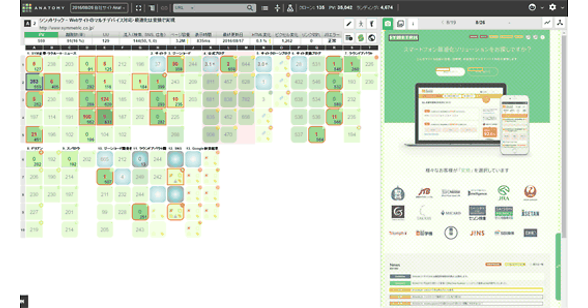 モバイルWeb開発のシンメトリックは、Web改善に必要な膨大な分析データを1画面にまとめて表示できるサービス「Anatomy(アナトミー)」を8月29日にリリースした。