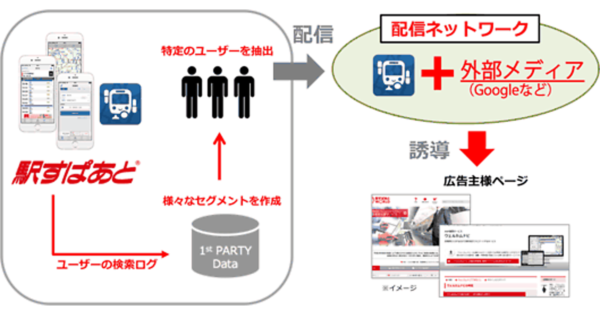 Adgramは、累計650万ダウンロード(2016年6月末時点)の駅すぱあとアプリのユーザーの移動予測データを外部の広告配信ネットワークと連携させ、ユーザーの生活圏や趣味嗜好を独自にセグメントしたターゲティング配信を実施する。