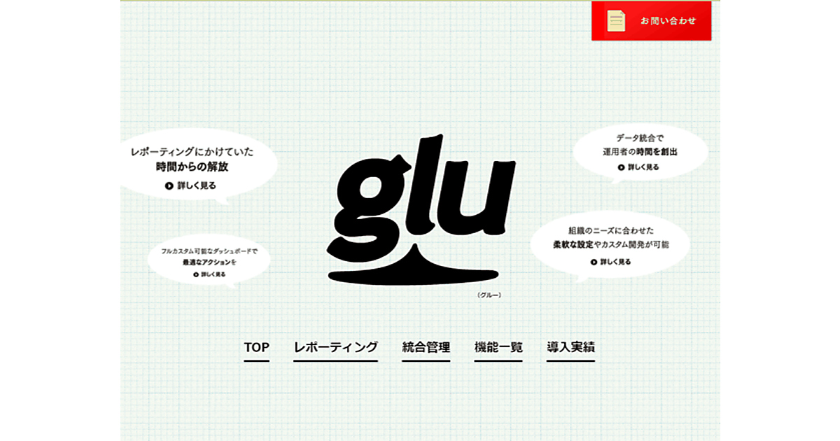 gluは、Web APIを使ってリスティング広告やディスプレイ広告、アフィリエイト広告、アクセス解析、CRMなどさまざまなマーケティングデータを集約して「見える化」するシステムで、担当者のニーズに合わせて柔軟にカスタマイズしたレポートをExcelで出力できることが特徴。