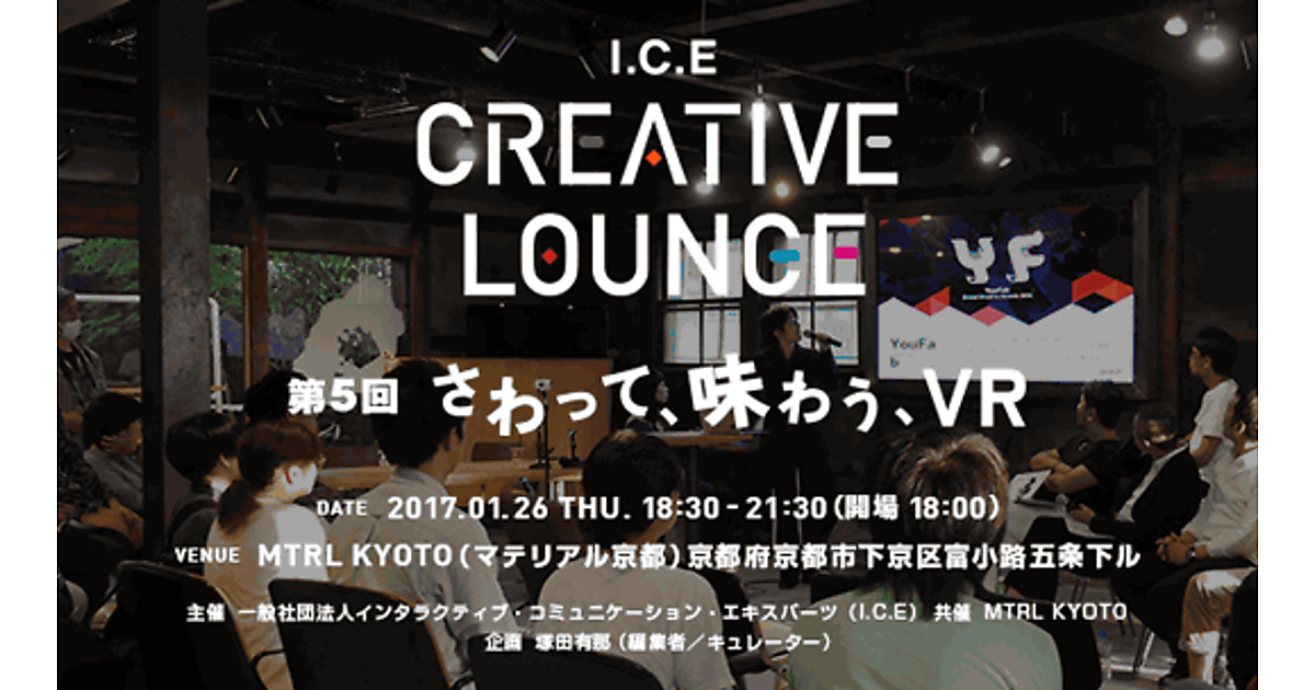 インタラクティブ・クリエーションの団体I.C.E(インタラクティブ・コミュニケーション・エキスパーツ)は、VR(バーチャルリアリティ)における人の五感にフォーカスしたトークイベントを1月26日(木)に京都で開催する。