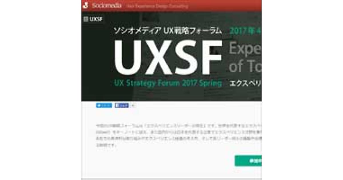 UX戦略支援のソシオメディア主催のフォーラム、「UX戦略フォーラム 2017 Spring」が4月26日に東京で開催される。2014年春にスタートしたUX戦略フォーラムは、UXデザイン・サービスなど、企業にとって重要なUX戦略を4つのテーマ「UXマネジメント」「UXメソッド」「UXメトリクス」「UXリーダーシップ」を軸に探求していくイベント。UXデザイナーだけでなく、現場スタッフや経営陣がUX戦略を学ぶ機会となっている。