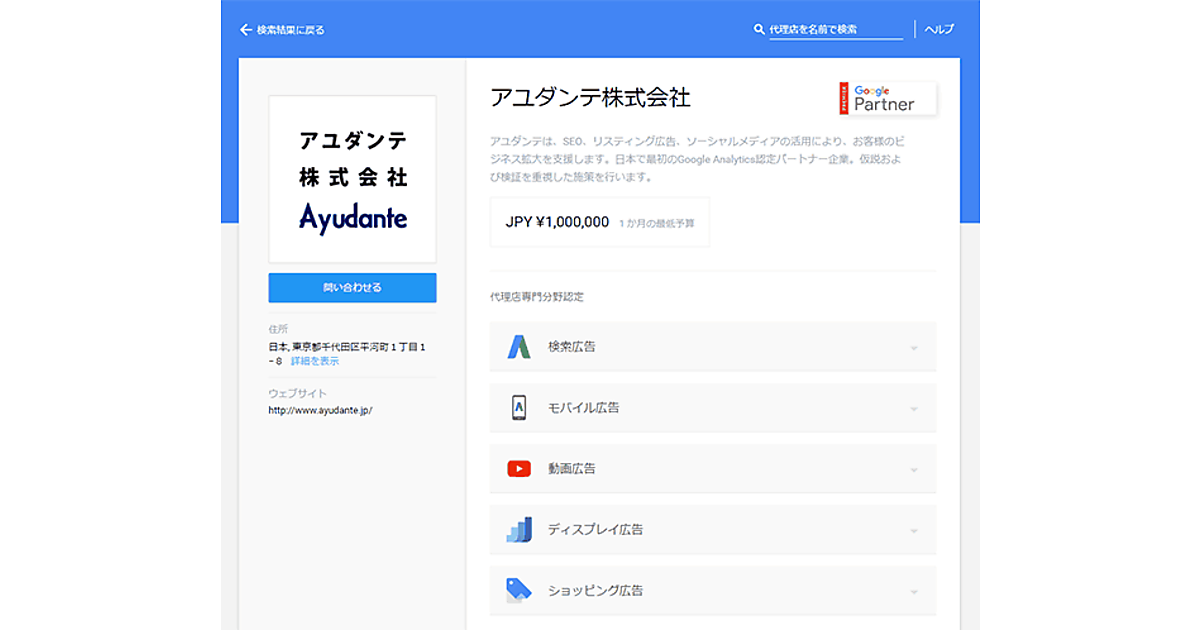 アユダンテ、「Google Partnersプログラム」で5つの専門分野認定をすべて取得
