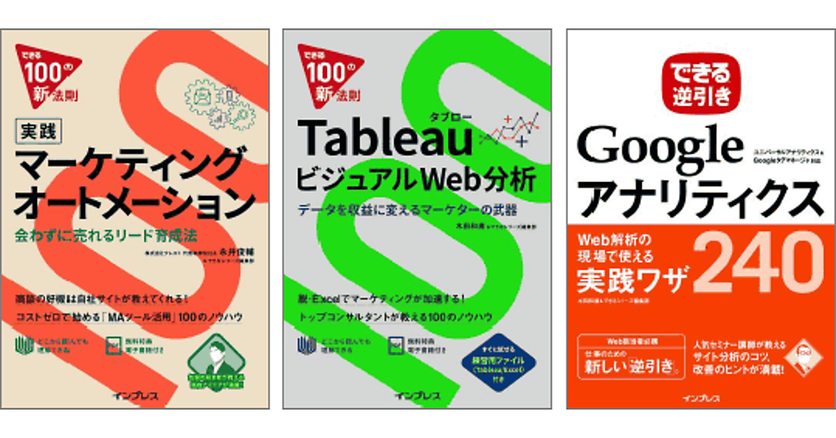 メディア事業のインプレスは、新年度で新たにデジタルマーケティングを学びたい人に向けて、Googleアナリティクス、マーケティングオートメーション、Tableau(タブロー)の解説書を1週間限定で全ページ無料公開すると4月12日に発表した。