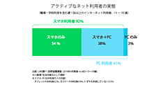 - 職場や学校などで週1回以上、インターネットを利用するでは「スマホのみ」が最多、「スマホとPC」併用者を上回る