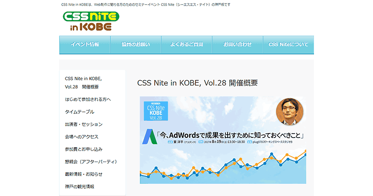 - CSS Nite in KOBE, Vol.28「今、AdWordsで成果を出すために知っておくべきこと」