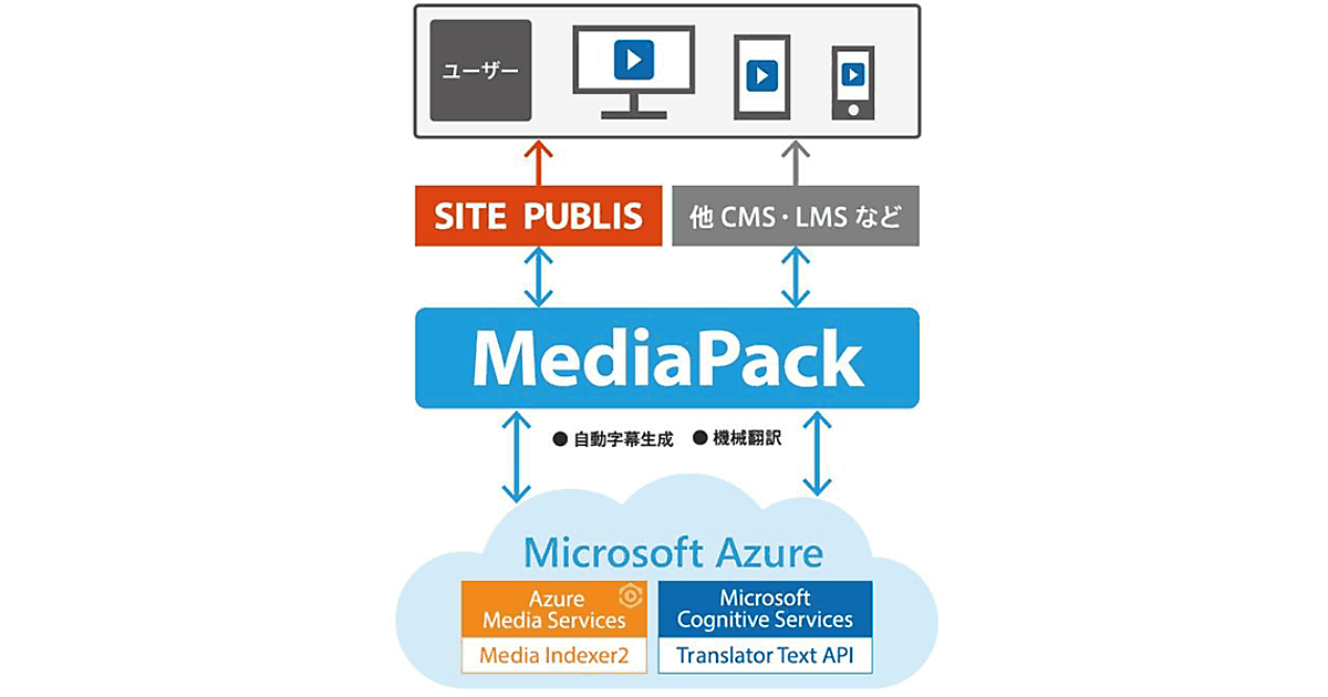 MediaPackは、Microsoft Azureを活用したSaas型の動画配信プラットフォーム。元の動画素材を1つ用意すれば、動画の取り込みや変換、暗号化、配信まで動画配信にかかわるワークフローを自動化してマルチデバイスに配信できる。