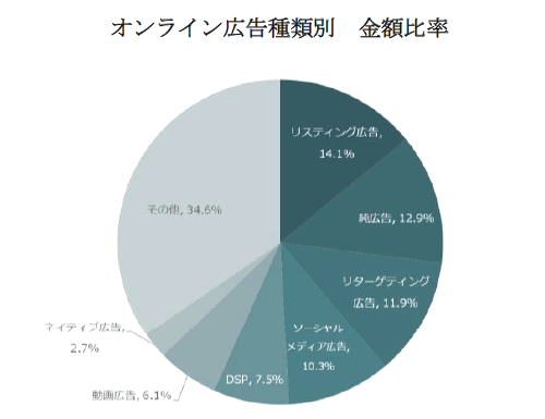 オンライン広告種類別金額比率、リスティング広告が最も多い