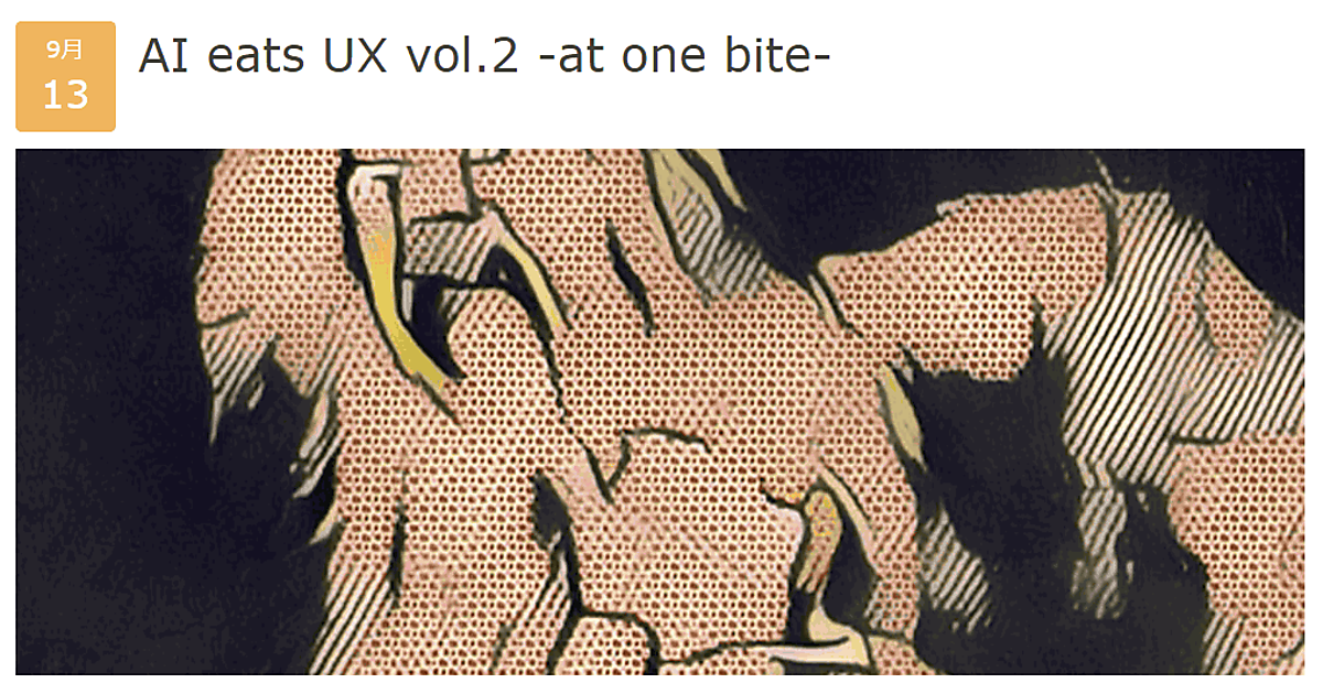AIに関心があるUX関係者・デジタルサービス開発者のための勉強会/LT会「AI eats UX」の第2回を、UX TOKYOが9月13日(水)に京橋で開催する。
