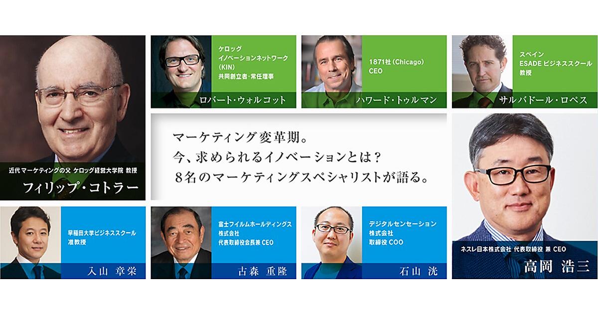 をはじめとする、世界各国のマーケティング第一人者、日本を代表する経営者、マーケティング学者など8名のスピーカーが登壇し、社会や経済の発展を促すマーケティングの活用について議論する。