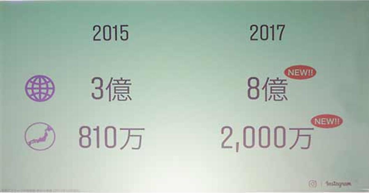 Instagramが日本で、このような大きなイベントを開催するのは2015年以来2回目となり、2015年当時と月間アクティブユーザー数を比較しても、グローバルでは3億から8億へ、日本では810万から2000万へと成長を続けている。