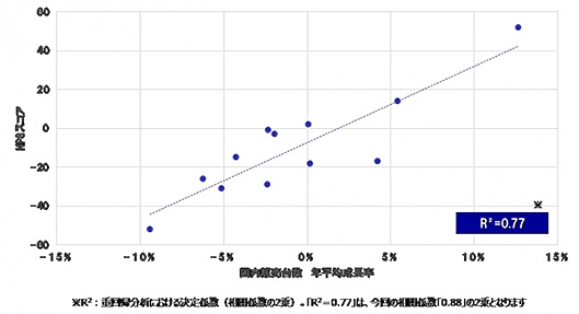 調査対象の12メーカー/ブランドの「販売台数年平均成長率」と「NPS」における相関性について、注目した。