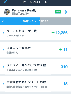 オートプロモートは米国と英国で先行していた広告商品で、その日つぶやいたツイートを順番に10件まで自動的に広告する。日常的にツイートしているアカウントなら、初期設定さえ済めば広告クリエイティブや細かな予算設定をすることなく、定額で広告を開始できる。
