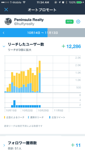 ただし、広告するツイートは投稿順になるため「おはようございます」といった内容も拡散される。どちらかというと、複数の会話から成り立つツイートよりも、1つのツイートで情報が完結するプロモーション型や情報発信型のアカウントの方が運用に向いている。