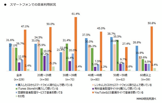 スマートフォンでの音楽聴取は59.0%。音源はYouTubeなど動画サイト