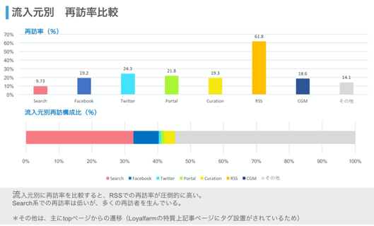 流入元(直前にどのサイトにいたか)によっても再訪率に差が見られた。
