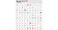 ランキングは、海外売上高比率30%以上のグローバルブランドを対象とした「Japan's Best Global Brands(JBGB)」と、同売上高比率30%未満の国内ブランドが対象の「Japan's Best Domestic Brands(JBDB)」の2部門。