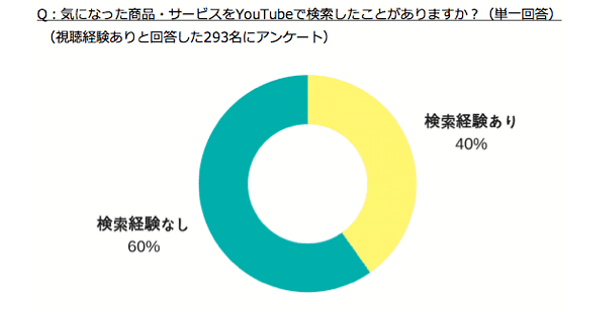 「気になった商品・サービスをYouTubeで検索したことがありますか?」との質問に対しては、40%が「検索経験あり」と回答した。