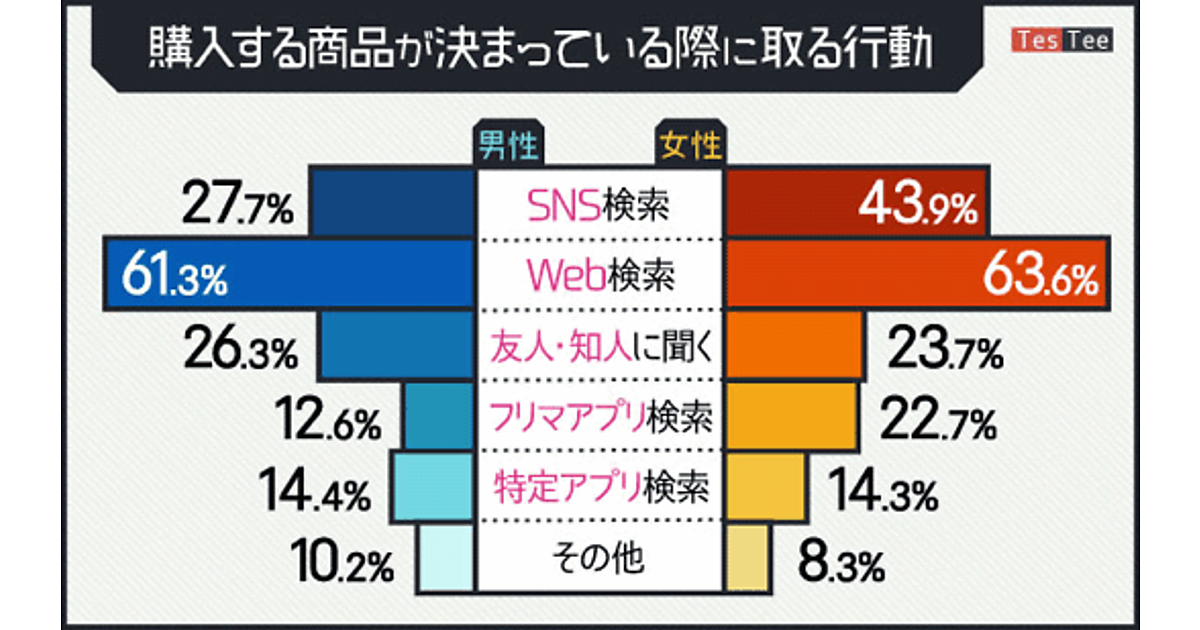 購入商品が決まっている時は「Web検索」。女性は「SNS検索」も