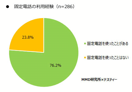 このうち、「固定電話が自宅にない」と回答した中高生286人を対象に固定電話の利用経験を聞いたところ、23.8%が「使ったことがない」と回答した(回答者全体に占める比率としては6.2%に相当)。