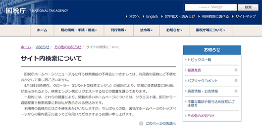 https://internet.watch.impress.co.jp/docs/yajiuma/1114712.html国税庁Webサイト、全URL変更で混乱 サイト内検索も役立たず、「無限ループ」状態に