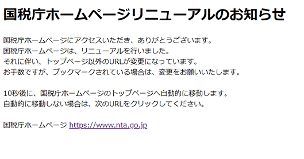 3月31日に国税庁のサイトがリニューアルされ、トップページを除いたほとんどのページのURLが変更になりました。これにより、国税庁のコンテンツにアクセスできなくなり、困っているという声があちこちで聞かれるようになりました。この問題はニュースメディアでも取り上げられています。