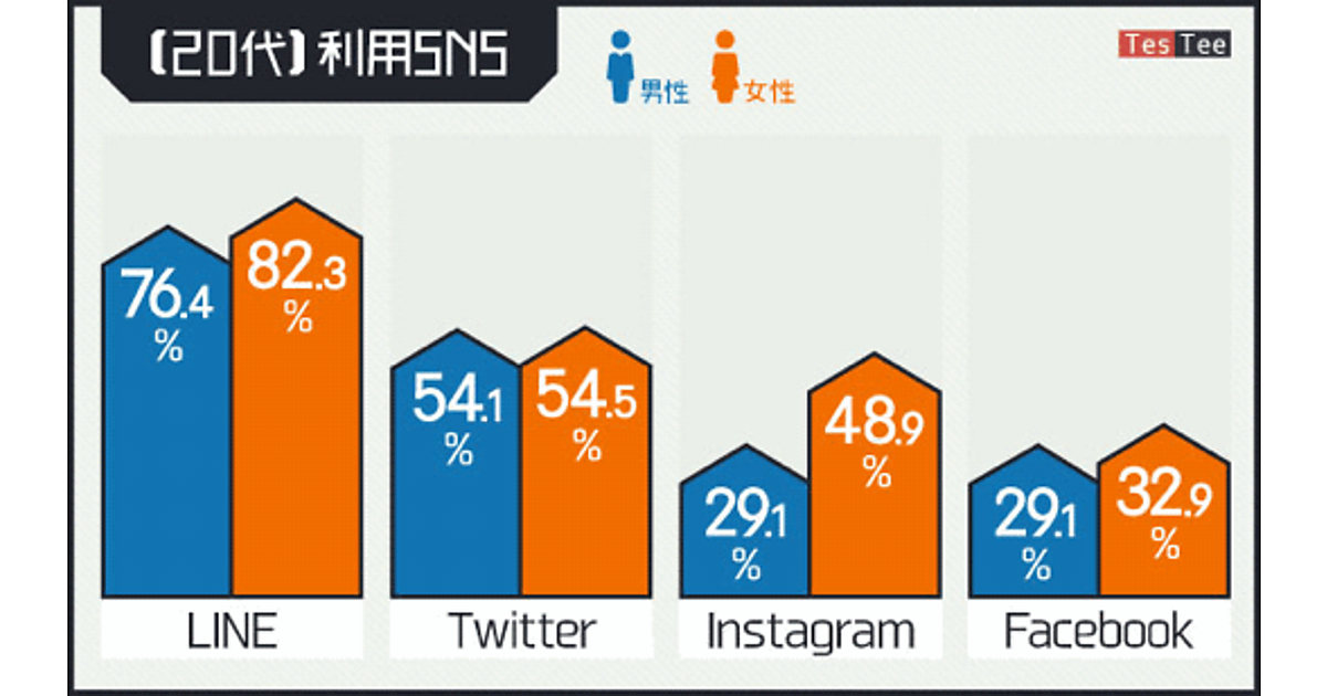 利用SNS: LINEとTwitterが強い。Instagramは男女差あり