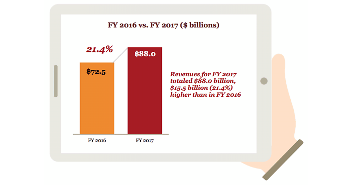 Interactive Advertising Bureau(以下「IAB」)は5月10日、2017年の米国のインターネット広告費が前年比21.4%増の880億米ドル(1ドル113円換算で9兆9,940億円)に達したと発表した。
