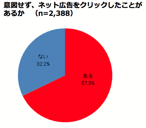 「意図せず、ネット広告をクリックしたことがありますか?」との問いに対して、67.8%が「ある」と回答した。