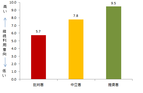 推奨度が高いほど継続利用意向も高い