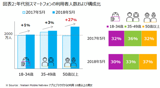 50歳以上がスマホ利用者数の増加をけん引。利用時間も遜色なし