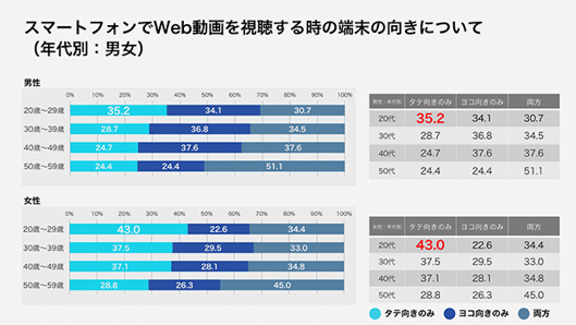 20代の4割が「タテ向きのみ」でWeb動画を視聴